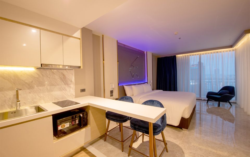 Surface Area: 42 Sqm Our Deluxe Room at DEE Tower(Double bed (no twin option) offers 42 square meters of thoughtfully designed space, ideal for couples or solo travelers. This modern-style room features a comfortable double bed and a compact kitchenette, perfect […]