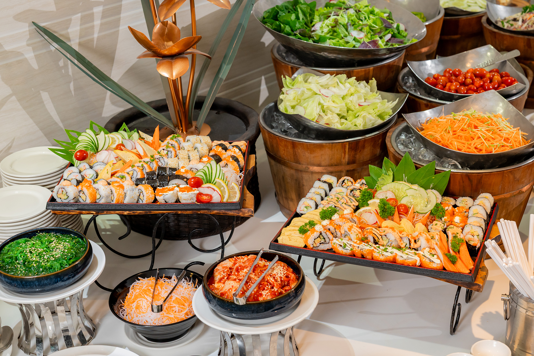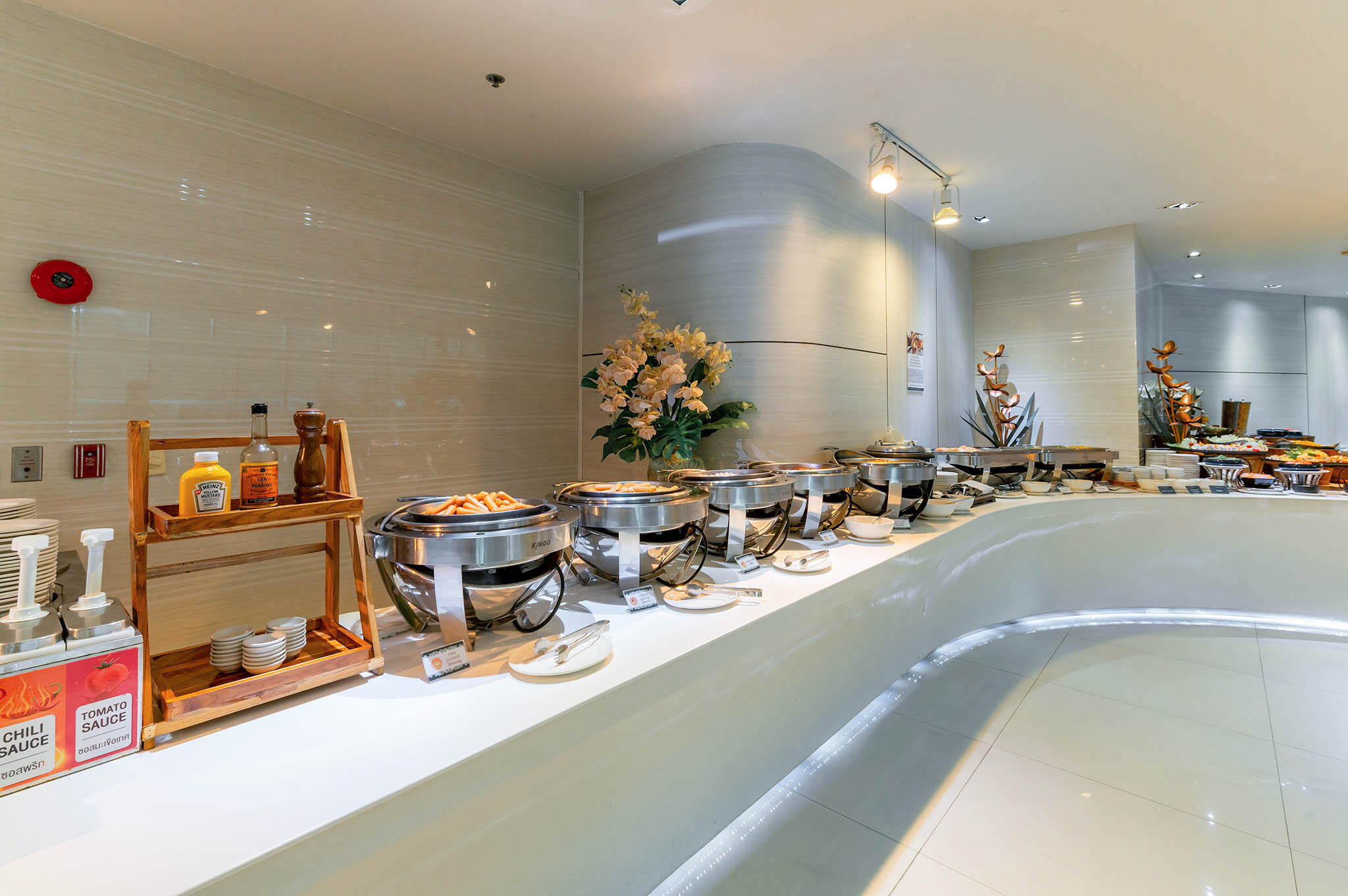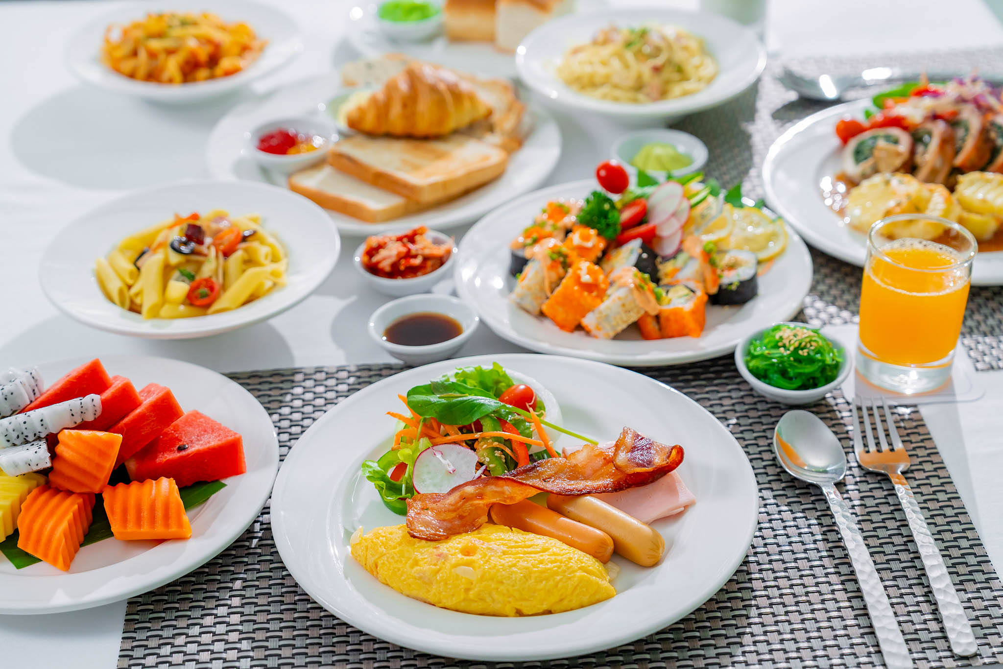Our international breakfast buffet is served daily from 06:30 AM to 10:30 AM, offering something to delight every palate. Highlights include a fresh salad bar, a selection of warm, flaky bakery items, and a vibrant fruit station, all carefully prepared to ensure quality and freshness.