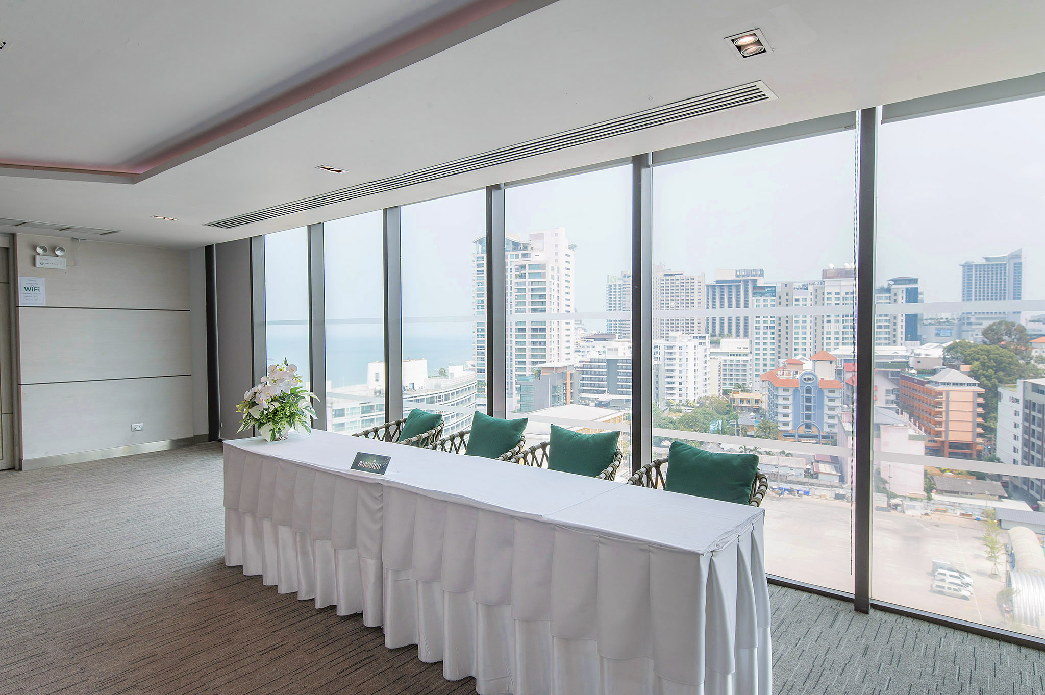The Panorama Meeting room in CHIC Tower (13th floor) is a large meeting room with a large capacity. The design and interior of the glass are all around. Allowing enough natural light to pass through and allowing you to immerse yourself in the landscape and sea view of Pattaya
